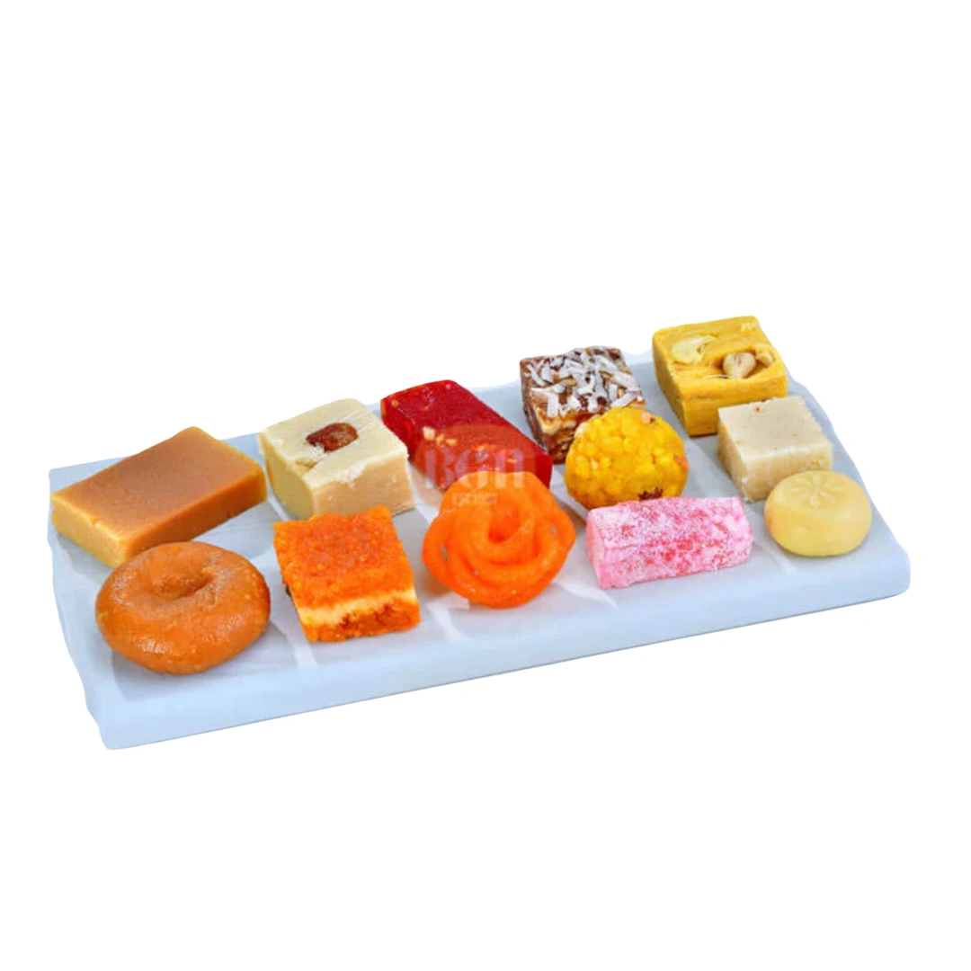 A delightful collection of traditional Indian sweets, offering a medley of rich flavors and textures. Perfect for gifting or indulging in a variety of timeless favorites.
