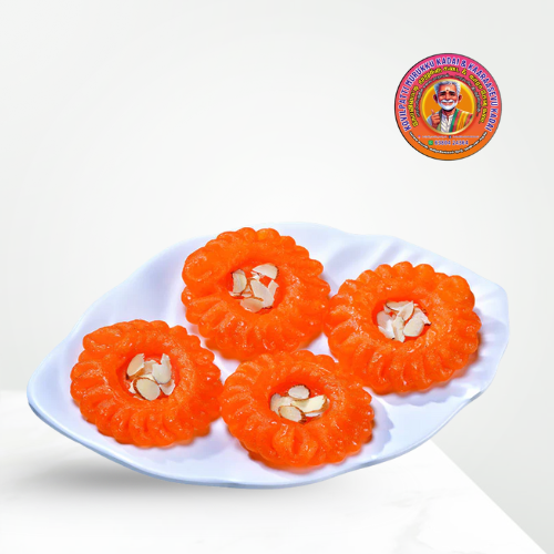 Soft, juicy, and perfectly shaped – these Mini Jangiris are a festive delight in every bite! Soaked in light sugar syrup and made with pure urad dal batter, they bring the joy of temple prasadam right to your plate.